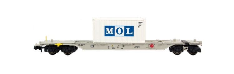 Aufschrift:mit grünen 20 Fuß Containern "Mol"Pantograph: ()